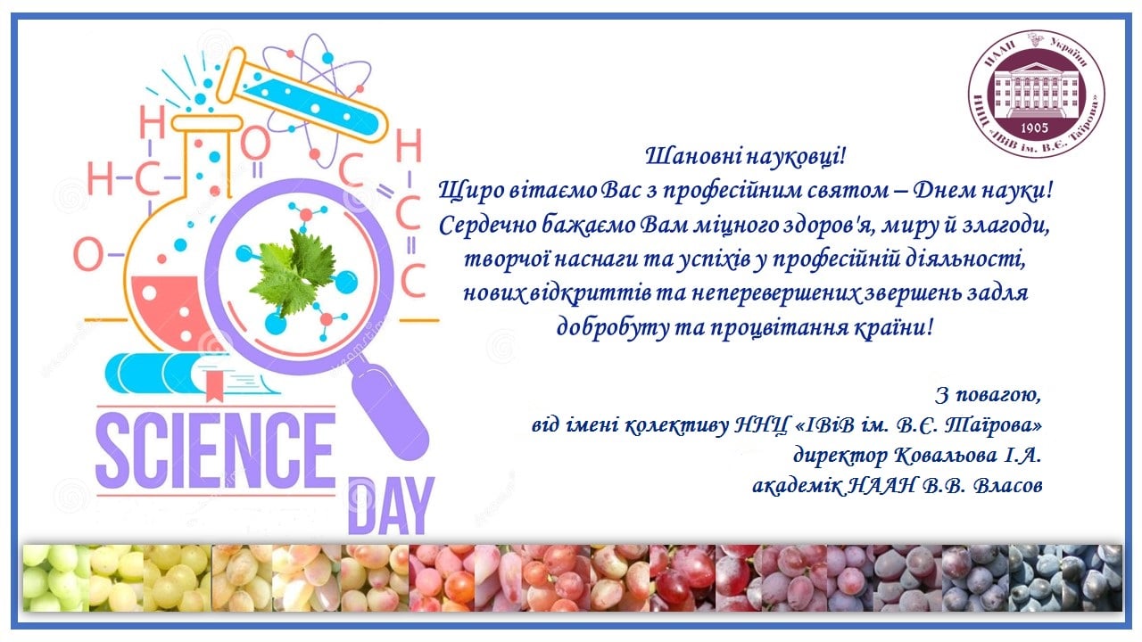 On the occasion of the Day of Science in the premises of the institute, near the assembly hall, was presented an exhibition of achievements of scientists of the institute, an exhibition of dissertations and abstracts, greeting posters and an exhibition of wine bottles.