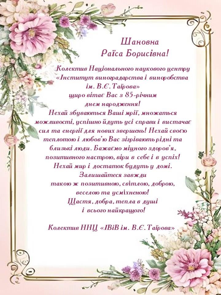 Вітаємо з 85-річним Ювілеєм ІВАНОВУ Раїсу Борисівну! Опубліковано: 13.04.2026 р., 04:13 | Автор: Кузьменко Артем Post Views: 3 Повернутись до стрічки новин Схожі статтіВітаємо з Ювілеєм ДЖАБУРІЮ Людмилу Вікторівну!29.11.2025Вітаємо з Ювілеєм КОВАЛЬОВУ Ірину Анатоліївну!19.05.2025Вітаємо з Ювілеєм Ляшенко Галину Віталіївну!22.11.2023Вітаємо з Ювілеєм МАТЮШЕНКО Людмилу Іллівну!13.06.2023Вітаємо Афанасенко Світлану Павлівну з Ювілеєм!17.02.2023Вітаємо зі славетним Ювілеєм!!!04.10.2022
